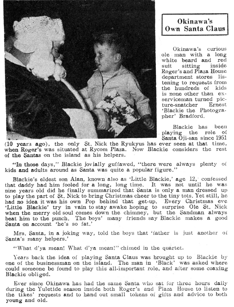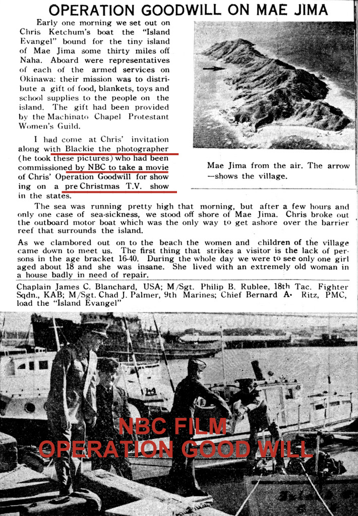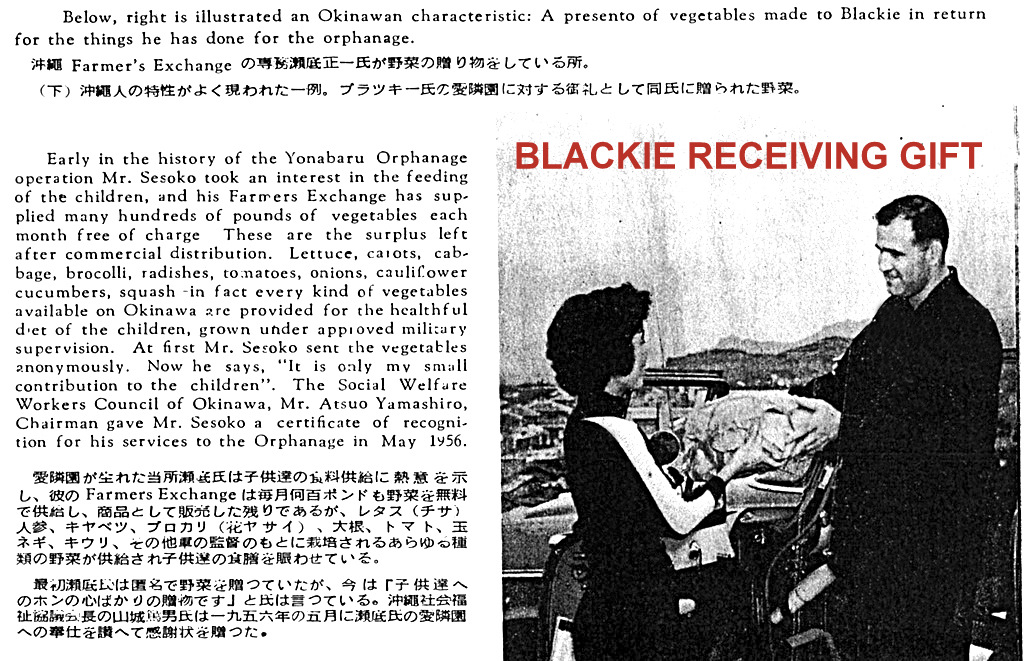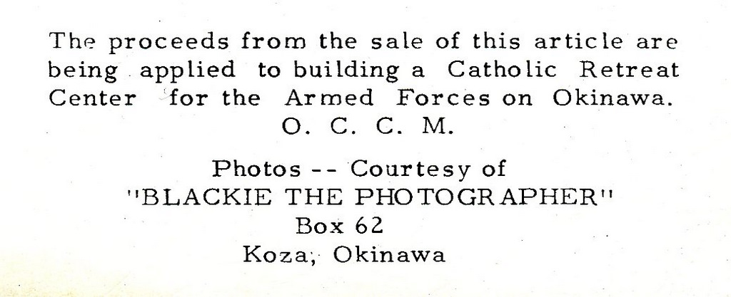 Blackie provided photographic work and support for a lot of various charities and missionary work that was happening on Okinawa. Note that Blackie's wife Virlin also supported him in those charity works herself.