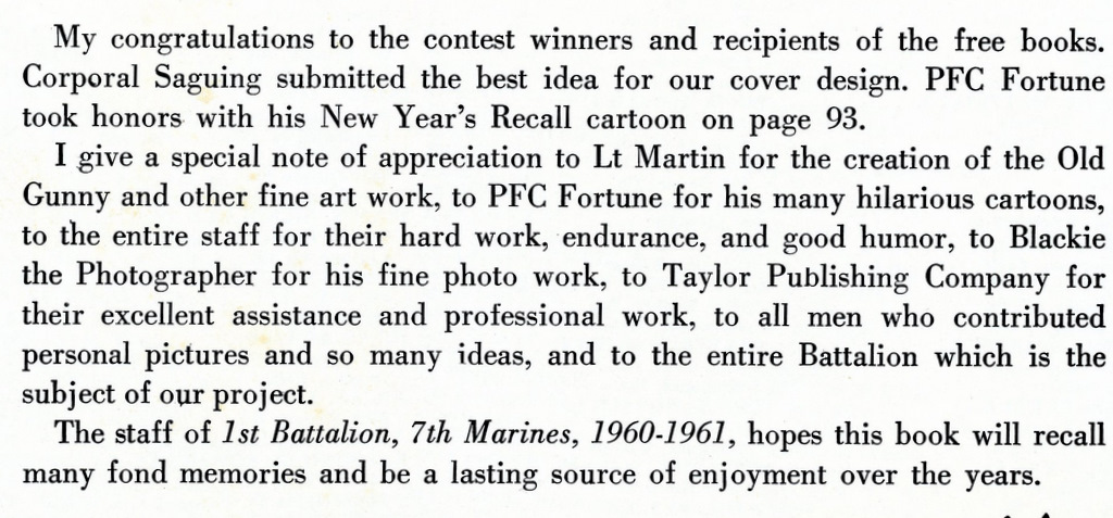 1961 - 1st Battalion 7th Marines 1960-1961 - Taylor Publishing Co. Dallas, Texas