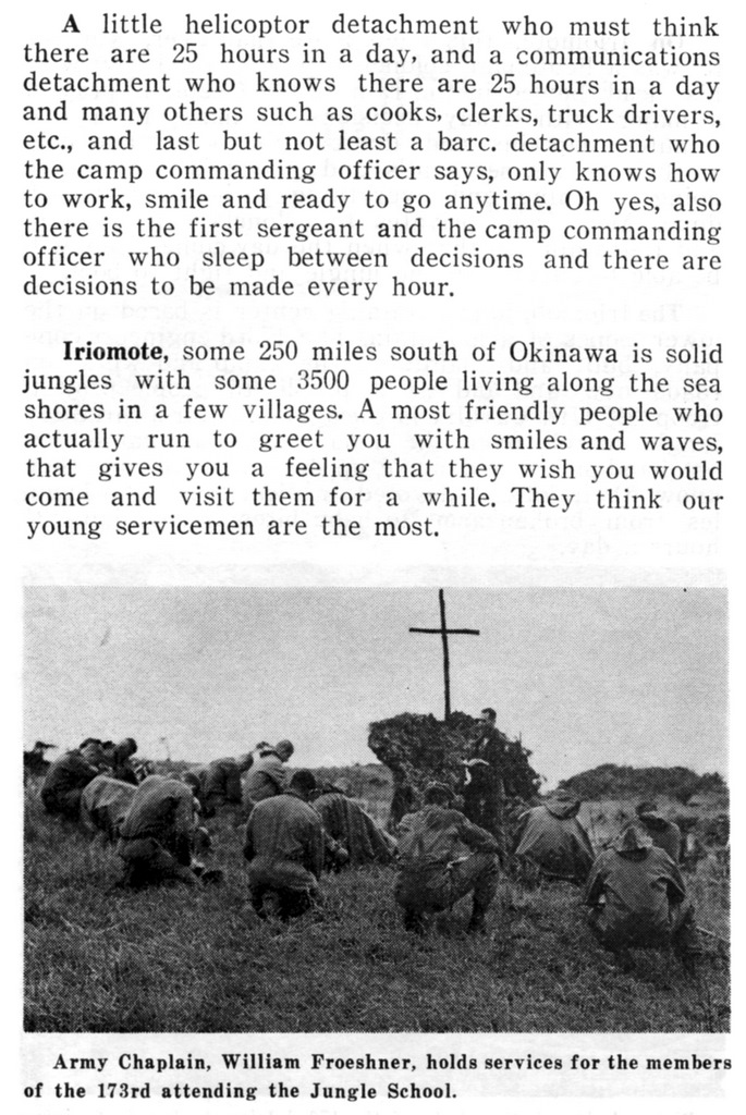 Blackie photographed many military units during his time on Okinawa, he provided photos for military unit books, see the Published Works - Credited section for some of his books, and he provided photos to "This Month on Okinawa" magazine. The photos below are just a few of the military photos that appeared in "This Month on Okinawa".