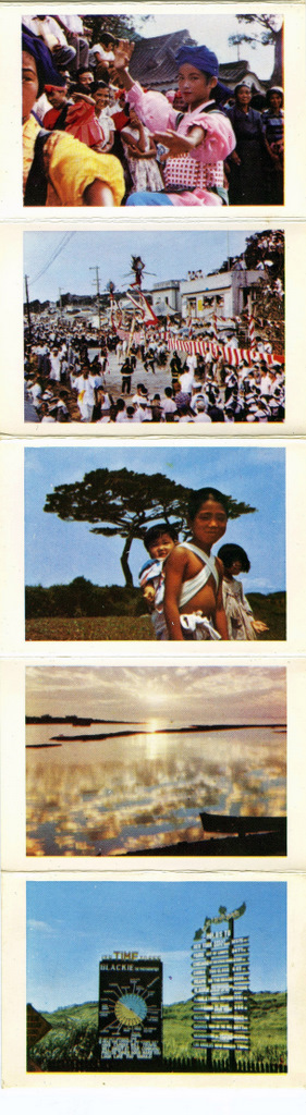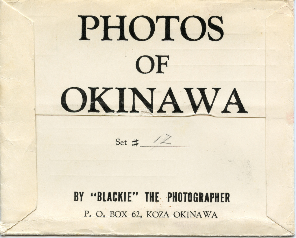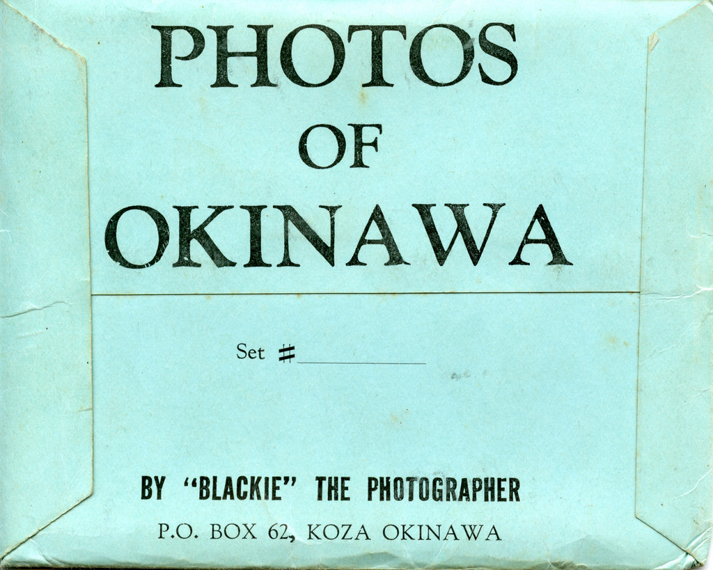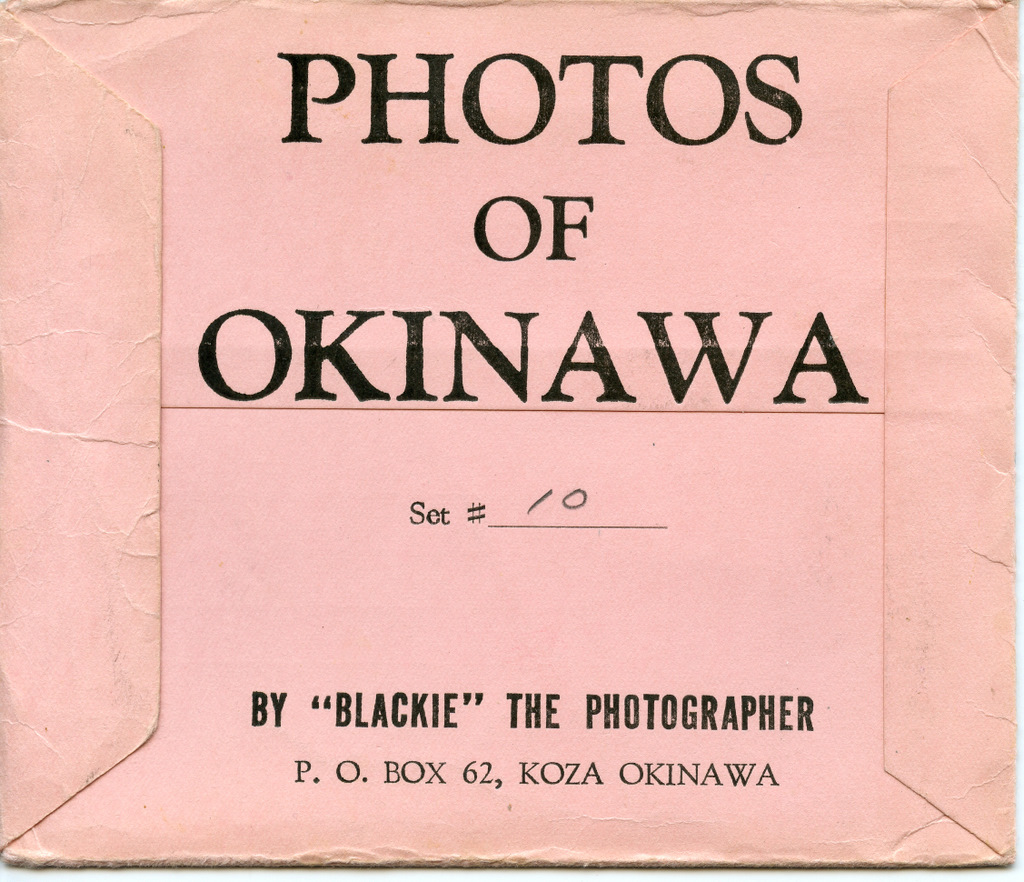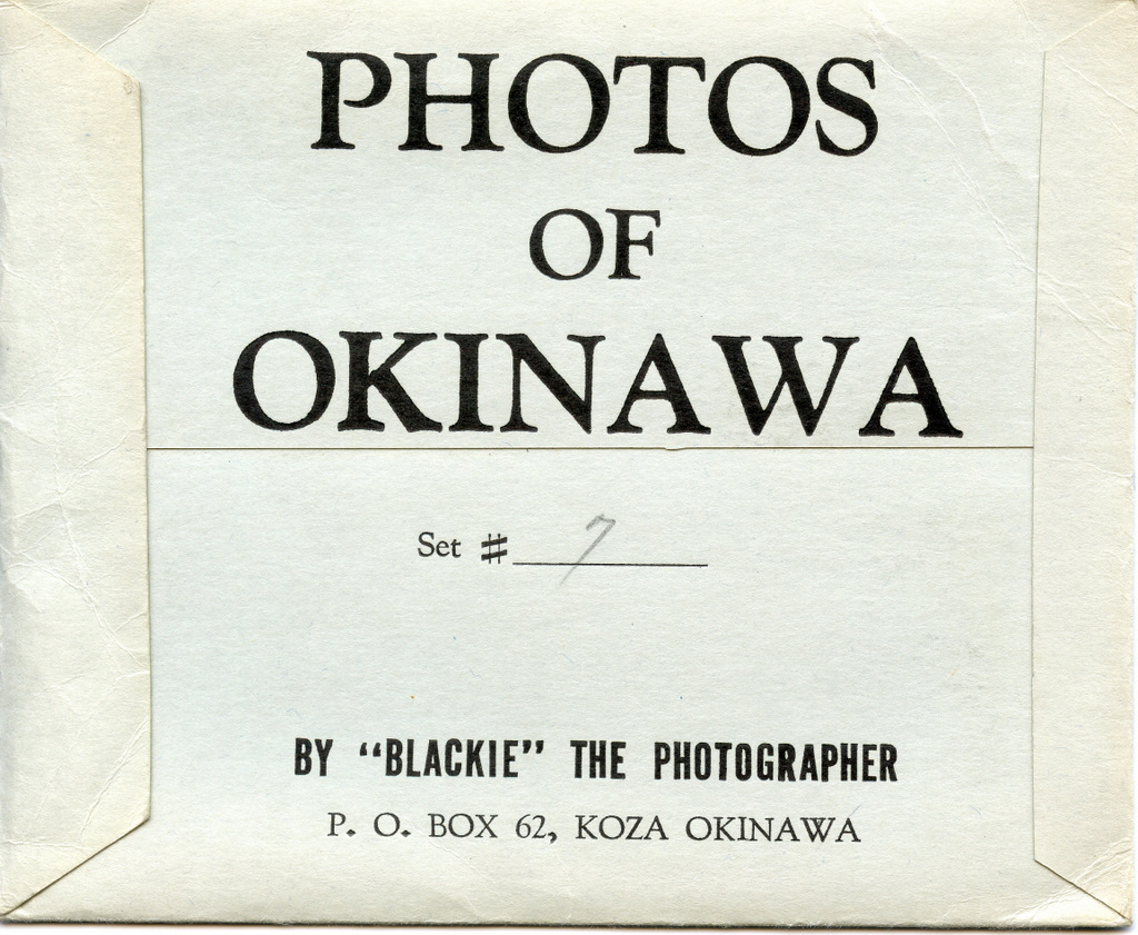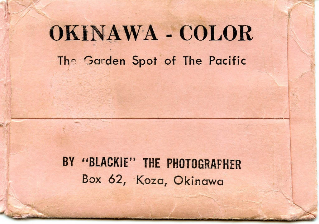Blackie sold envelopes containing 4x5 black and white photos ready to be mailed. He also did a miniature fanfold mailer containing color photos. This folder was 3 inches wide and 34 inches long with 16 color photos with a description on the back of each in English and Japanese.